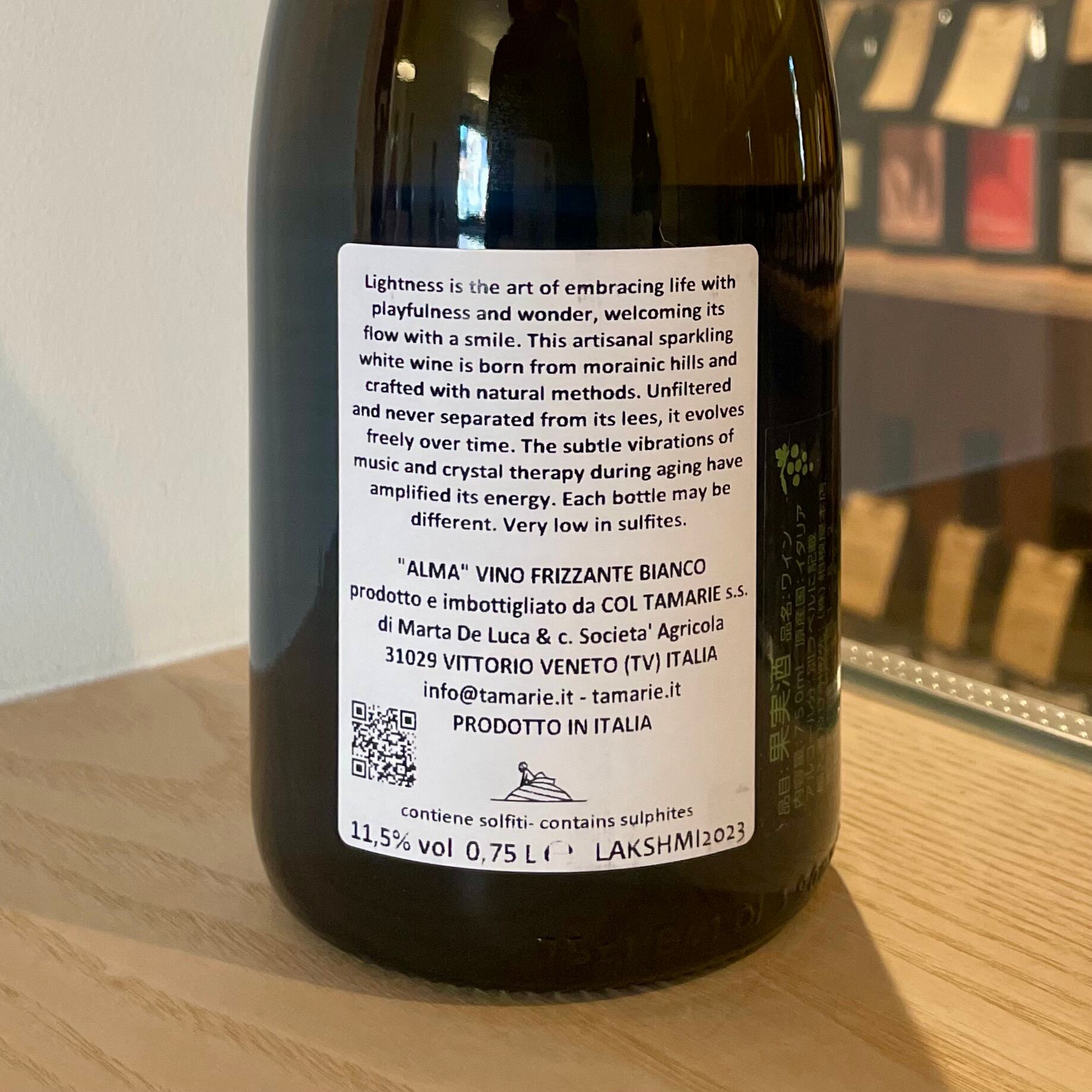 除梗後マセ 2~3 日、モストフィオーレ(プレスしないフリーランジュース)のみ使用 ステン発酵。2024 年のモスト添加後、瓶詰し再発酵。SO2 無添加 2.5bar