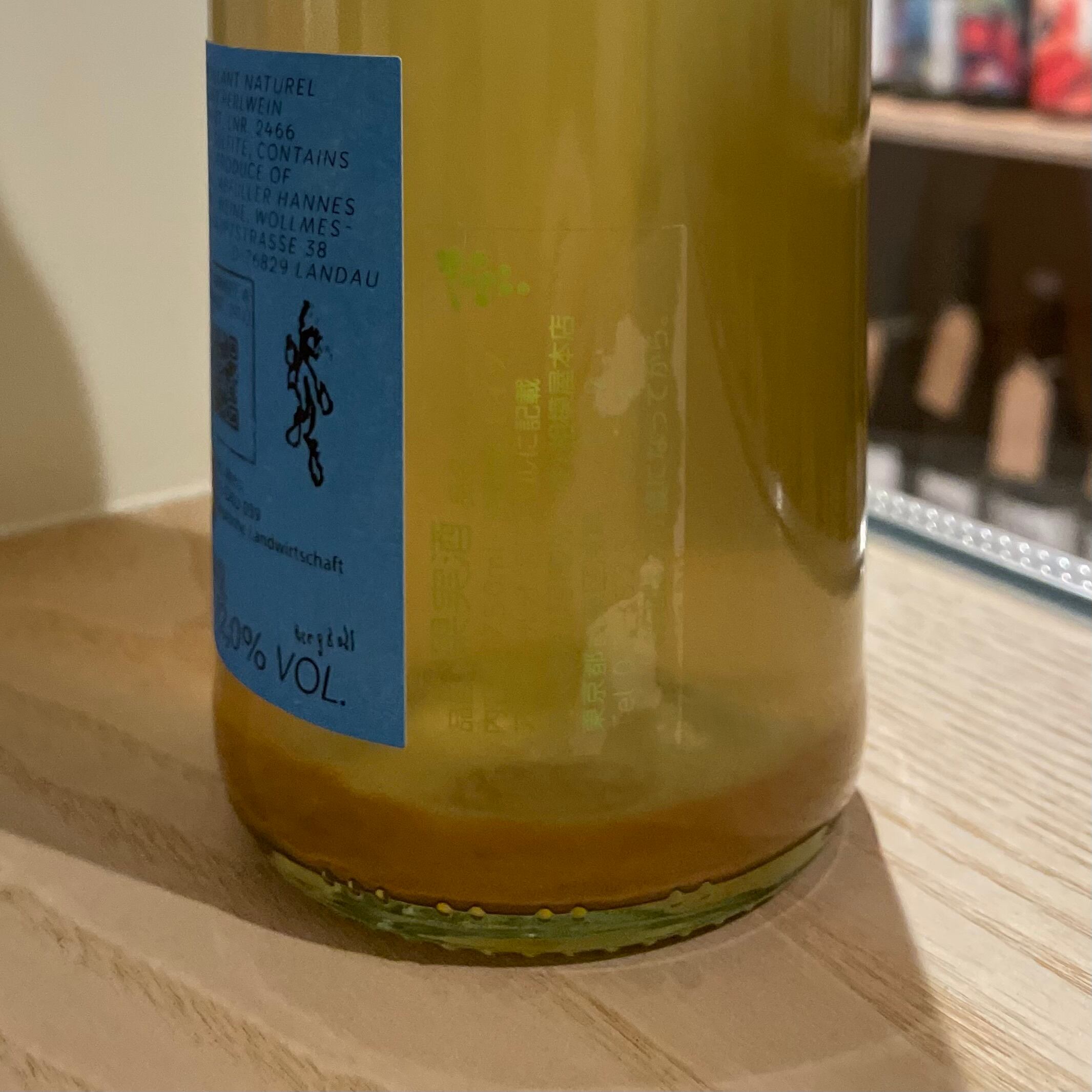 9 月初旬にムスカテラー(35%)ミュラートゥルガウ(35%)を収穫、ダイレクトプレスしてステンタンクに、その後ソービニヨンブラン(15%)最後に 10 月中旬にリースリング(15%)をタンクに入れる 発酵ゆっくり 11 月まで 樹齢 15-30 年 ライムストーン、サンドストーン土壌、標高 180-220m 収量 40hl/ha 残糖を残したまま瓶詰 デゴルジュせず出荷